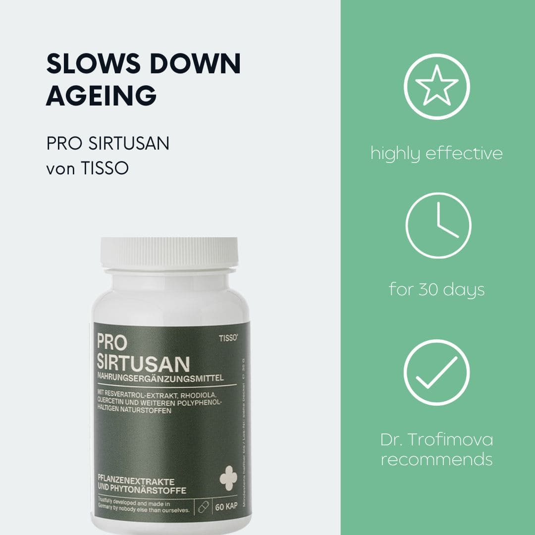 With its high content of plant-based sirtuin activators, Pro Sirtusan specifically supports the regeneration of cells and mitochondria.